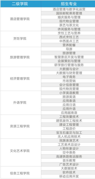 云南旅游职业学院院系专业设置情况