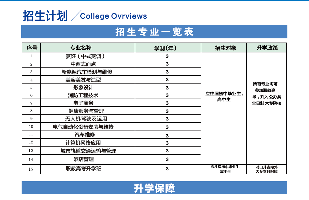 王牌专业:新能源汽车维修、中式烹饪精英班、形象设计定制班、城市轨道交通运营管理。